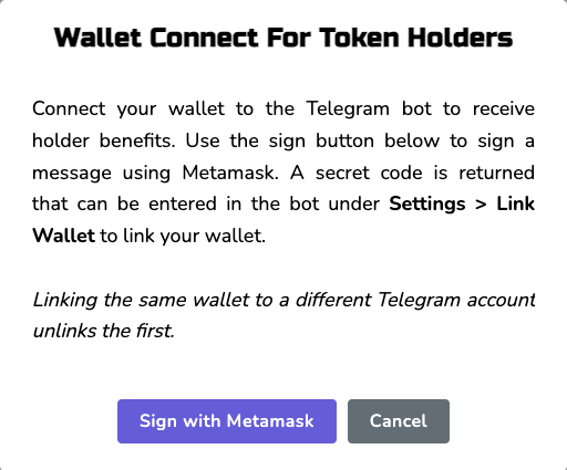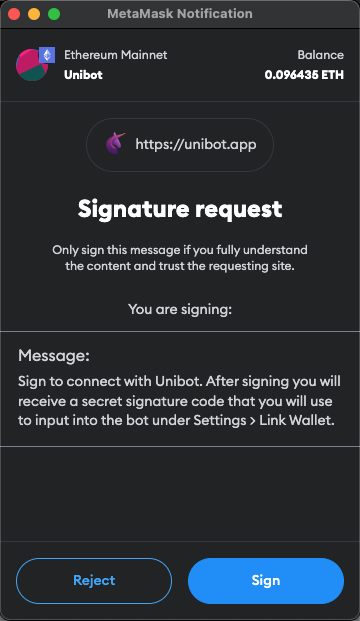 - After clicking the Sign with Metamask button, your wallet will prompt you to sign the Link Wallet message.